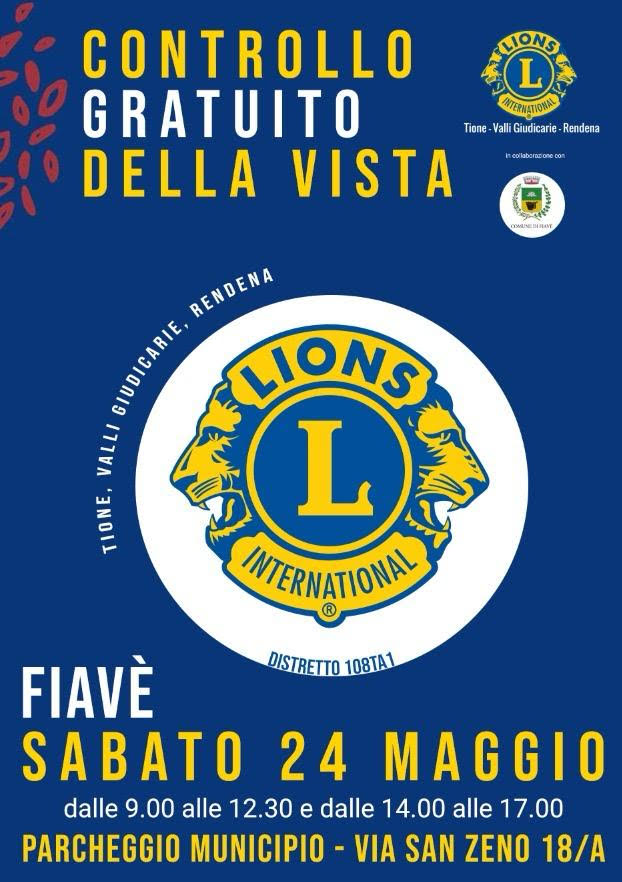 Lions Tione Valli Giudicarie e Rendena, ogni anno propone il Service/Progetto Lions che prevede "VISITE OCULISTICHE PREVENZIONE GLAUCOMA". Quest'anno il paese scelto è Fiavè.